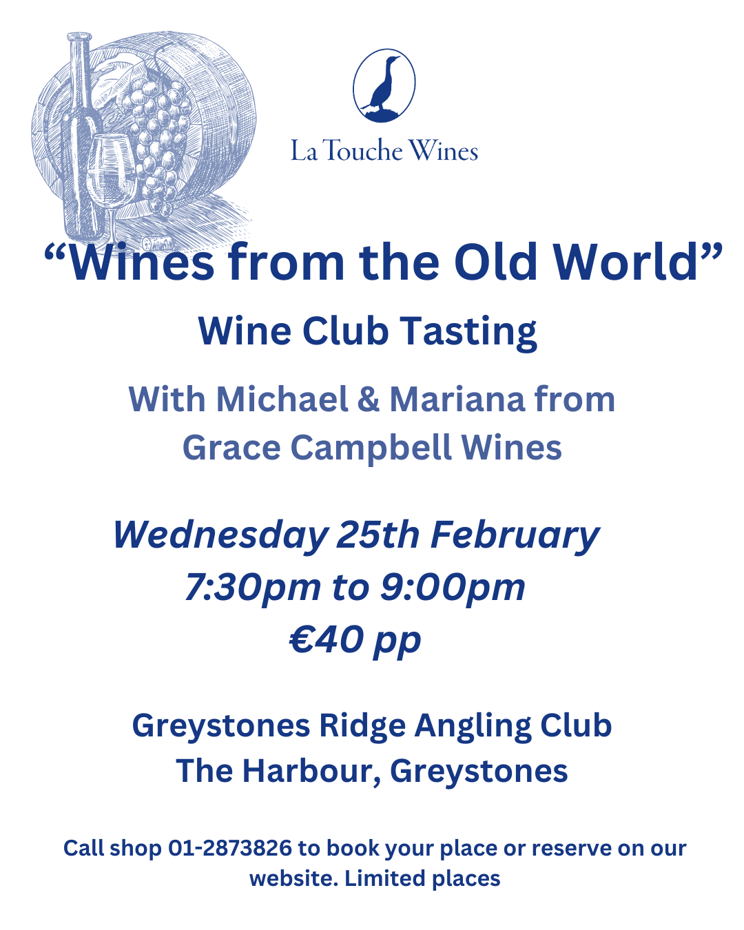 Whether you’re a long-time Wine Club member or new to tasting events with La Touche Wines, this promises to be a relaxed and engaging evening celebrating great wine and great conversation.