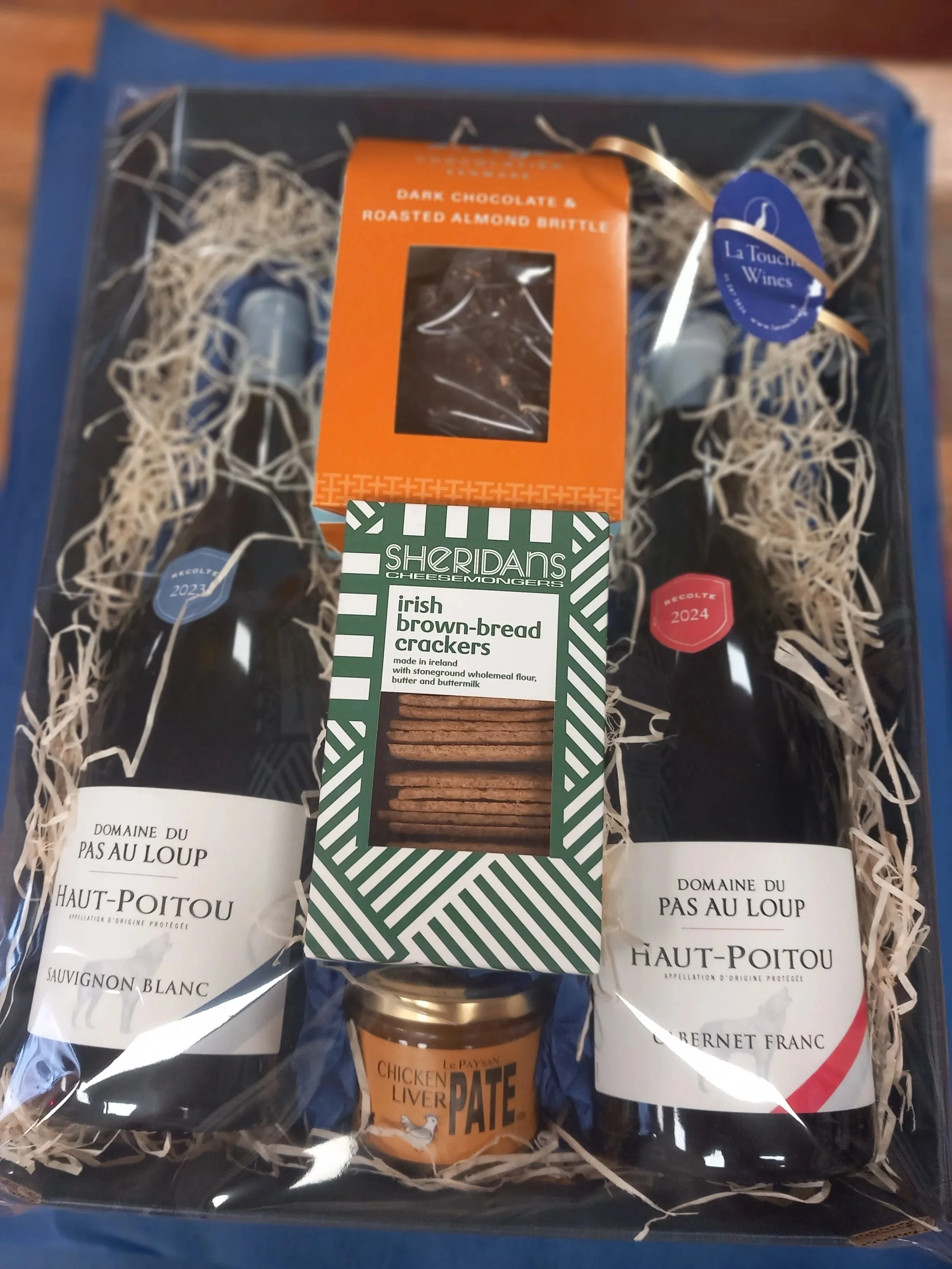 A stunning Albarino paired with an Argentinian Malbec full of bramble fruits along with Spanish pate, Irish crackers (G.F), and luxurious Skelligs chocolates.